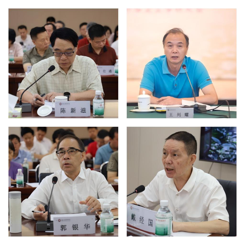 会上,我校首席科学家陈新滋院士、高级顾问郭银华教授、王列耀教授和人工智能学院院长戴经国教授分别代表四个学科建设分委员会作了发言,简要介绍了各分委会的工作设想。